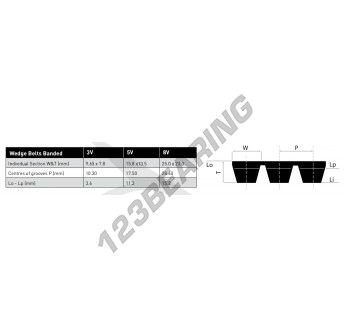 De riem 3-3V1250 van de familie Meerstrengs V-snaren, merk Algemeen. Het heeft een sectie 9.65mm x 7.8mm. met een binnenlengte mm, een buitenlengte mm.