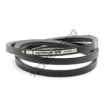 De riem 8X900-OPTIBELT van de familie Gladde V-snaren, merk OPTIBELT. Het heeft een sectie 8m x 5mm. met een binnenlengte 900 mm, een buitenlengte 931 mm.