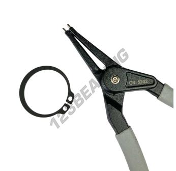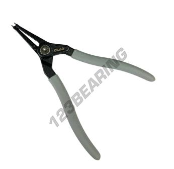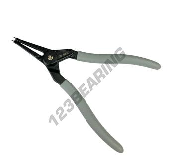 Rechte tang voor externe borgringen met onzichtbare veer, gemaakt van S45C en 48-52HRC staal. De punten zijn gemaakt van 2HRC staal met hoge treksterkte.