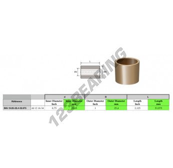 De Glijlager Bronze bekend als BAI19.05-25.4-53.975 Algemeen meet 19.05 mm in binnendiameter, 25.4 mm in buitendiameter en 53.975 mm lengte. Het is gemaakt in .