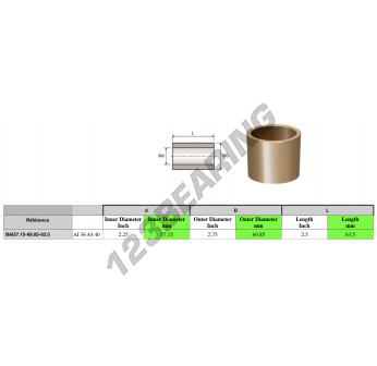 De Glijlager Bronze bekend als BAI57.15-69.85-63.5 Algemeen meet 57.15 mm in binnendiameter, 69.85 mm in buitendiameter en 63.5 mm lengte. Het is gemaakt in .