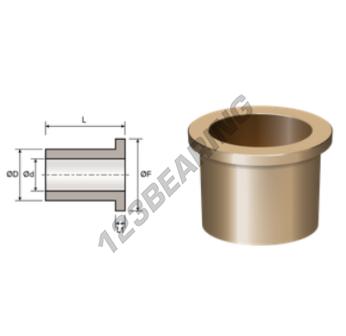 De Bronze Glijlager Met Kraag bekend als BFMF22-29-36-3.500-18 meet 22 mm in binnendiameter, 29 mm in buitendiameter en 18 mm lengte.