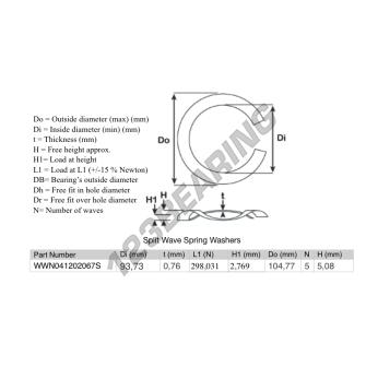 Het Gedeelde Gegolfde Sluitring met referentie SWSW-104.770-93.730-0.760-5-SS heeft een binnendiameter van 93.73 mm en een dikte van 0.76 mm. Het is gemaakt van ROESTVRIJ STAAL.