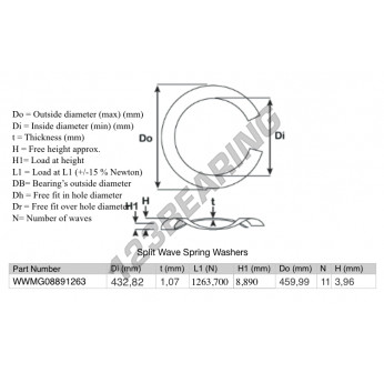 Het Gedeelde Gegolfde Sluitring met referentie SWSW-459.99-432.82-1.07-11 heeft een binnendiameter van 432.82 mm en een dikte van 1.07 mm. Het is gemaakt van STAAL.