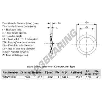 Het Gegolfde Sluitring - Compressietype met referentie WSW-CT-39.100-33-0.500-4 heeft een binnendiameter van 33 mm, een buitendiameter van 39.1 mm en een dikte van 0.5 mm. Het is gemaakt van STAAL.