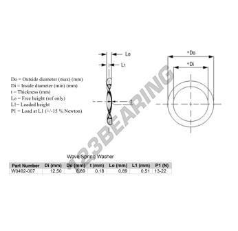 Het Gegolfde Sluitring met referentie W0492-007 heeft een binnendiameter van 8.89 mm en een dikte van 0.18 mm. Het is gemaakt van STAAL.