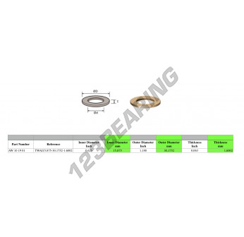 De Duwschijven bekend als TWAI15.875-30.1752-1.6002 Algemeen meet 15.875 mm in binnendiameter, 30.1752 mm in buitendiameter en 1.6002 in dikte.