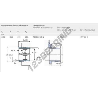 Het Mouw, bekend als het AOH2352G-SKF SKF, heeft een binnendiameter van 240 mm, een buitendiameter van 260 mm en een dikte van 205 mm.