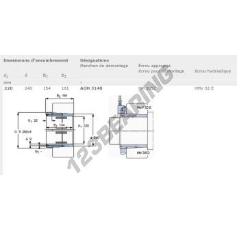 Het Mouw, bekend als het AOH3148-SKF SKF, heeft een binnendiameter van 220 mm, een buitendiameter van 240 mm en een dikte van 154 mm.