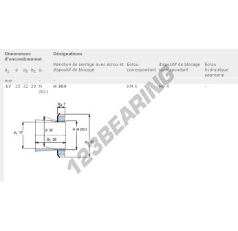 Het Mouw, bekend als het H304-SKF SKF, heeft een binnendiameter van 17 mm, een buitendiameter van 32 mm en een dikte van 28 mm.