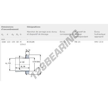 Het Mouw, bekend als het H3124-SKF SKF, heeft een binnendiameter van 110 mm, een buitendiameter van 155 mm en een dikte van 120 mm.