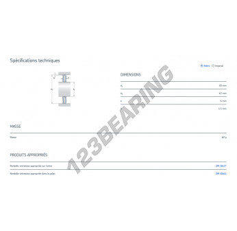 Het Pakkingring met referentie RDL-30X62X6-NBR-SKF heeft een binnendiameter van 30 mm, een buitendiameter van 62 mm en een dikte van 6 mm. Het is gemaakt van NBR.