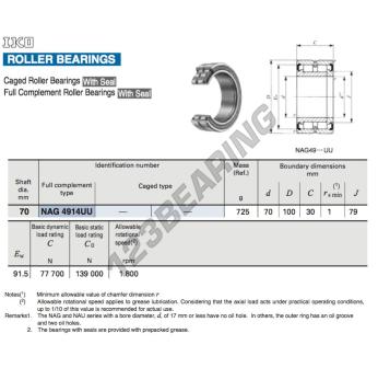 Het Andere Lager, bekend als het NAU4914-UU-IKO IKO, heeft een binnendiameter van 70 mm, een buitendiameter van 100 mm en een dikte van 30 mm.