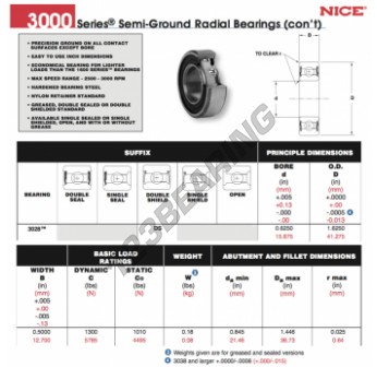 Het Kogellager, bekend als het 3028-DS-NICE NICE, heeft een binnendiameter van 15.875 mm, een buitendiameter van 41.275 mm en een dikte van 12.7 mm.