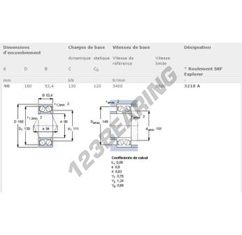 Het Kogellager, bekend als het 3218-A-SKF SKF, heeft een binnendiameter van 90 mm, een buitendiameter van 160 mm en een dikte van 52.4 mm.