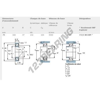 Het Kogellager, bekend als het 7315-BECBM-SKF SKF, heeft een binnendiameter van 75 mm, een buitendiameter van  160 mm en een dikte van 37 mm.
