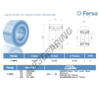 Het Kogellager, bekend als het F16019-ASFERSA ASFERSA, heeft een binnendiameter van 34 mm, een buitendiameter van 64 mm en een dikte van 37 mm.