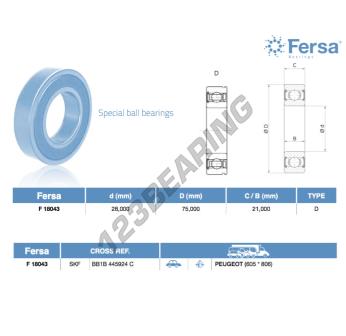 Het Kogellager, bekend als het F18043-ASFERSA ASFERSA, heeft een binnendiameter van 28 mm, een buitendiameter van 75 mm en een dikte van 21 mm.