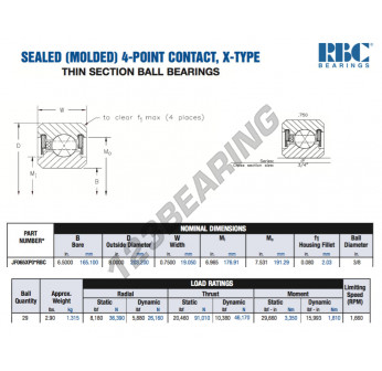 Het Kogellager, bekend als het JF065-XP0-RBC RBC, heeft een binnendiameter van 165.1 mm, een buitendiameter van 203.2 mm en een dikte van 19.05 mm.