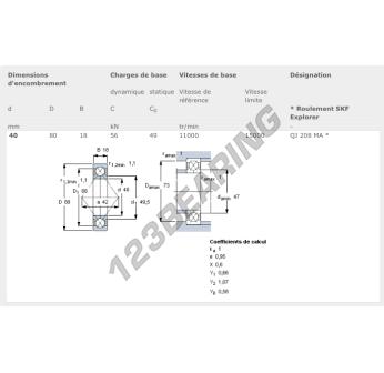 Het Kogellager, bekend als het QJ208-MA-SKF SKF, heeft een binnendiameter van 40 mm, een buitendiameter van 80 mm en een dikte van 18 mm.