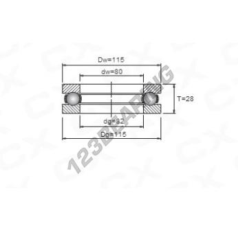 Het Kogeltaatslager, bekend als het 51216 Algemeen, heeft een binnendiameter van 80 mm, een buitendiameter van 115 mm en een dikte van 28 mm.