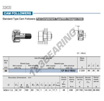 Het Nokrollen, bekend als het CFKR90-VUU-IKO IKO, heeft een binnendiameter van 30 mm, een buitendiameter van 90 mm en een dikte van 35 mm.
