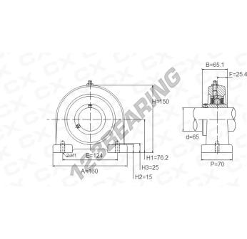 Het Lagerblok - 2 Bevestigingen bekend als UCPA213 Algemeen heeft een asdiameter van 65 mm en een centrumafstand van 124 mm. Dit onderdeelnummer is vervaardigd in gietijzer en het type bevestiging is .