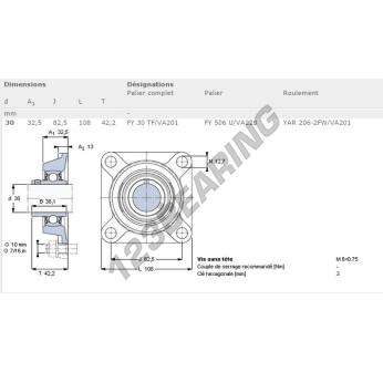 Het Lagerblok - 4 Bevestigingen bekend als FY30TF-VA201-SKF SKF heeft een asdiameter van 30 mm en een centrumafstand van 82.5 mm. Dit onderdeelnummer is vervaardigd in gietijzer en het type bevestiging is .
