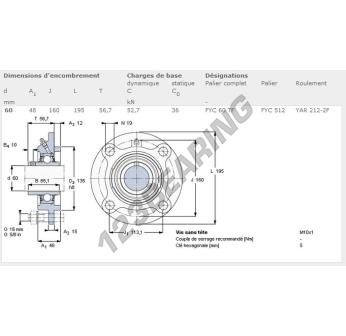 Het Lagerblok - 4 Bevestigingen bekend als FYC60-TF-SKF SKF heeft een asdiameter van 60 mm en een centrumafstand van 113.1 mm. Dit onderdeelnummer is vervaardigd in gietijzer en het type bevestiging is .