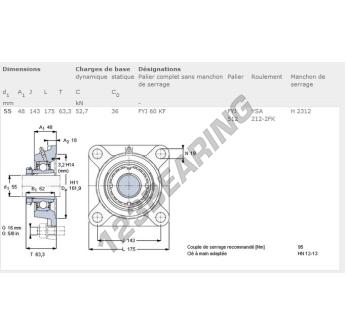 Het Lagerblok - 4 Bevestigingen bekend als FYJ60-KF-SKF SKF heeft een asdiameter van 55 mm en een centrumafstand van 143 mm. Dit onderdeelnummer is vervaardigd in gietijzer en het type bevestiging is .