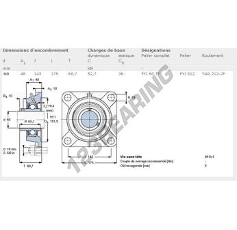 Het Lagerblok - 4 Bevestigingen bekend als FYJ60-TF-SKF SKF heeft een asdiameter van 60 mm en een centrumafstand van 143 mm. Dit onderdeelnummer is vervaardigd in gietijzer en het type bevestiging is .