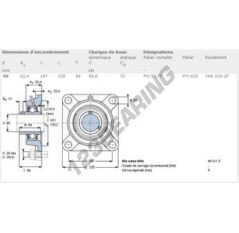 Het Lagerblok - 4 Bevestigingen bekend als FYJ90-TF-SKF SKF heeft een asdiameter van 90 mm en een centrumafstand van 187 mm. Dit onderdeelnummer is vervaardigd in gietijzer en het type bevestiging is .