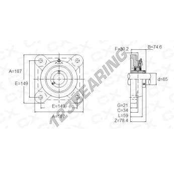 Het Lagerblok - 4 Bevestigingen bekend als UCFX13 Algemeen heeft een asdiameter van 65 mm en een centrumafstand van 149 mm. Dit onderdeelnummer is vervaardigd in gietijzer en het type bevestiging is .