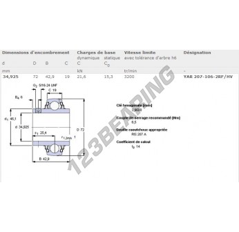 De Lagerblok Toebehoren bekend als YAR207-106-2RF-HV-SKF SKF meet 34.93 mm in binnendiameter, 72 mm in buitendiameter en 42.9 in dikte. Het is gemaakt in .