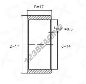 De Binnenring bekend als IR14X17X17 Algemeen meet 14 mm in binnendiameter, 17 mm in buitendiameter en 17 mm lengte. Het is gemaakt in .