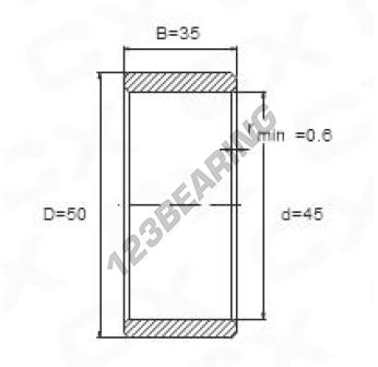 De Binnenring bekend als IR45X50X35 Algemeen meet 45 mm in binnendiameter, 50 mm in buitendiameter en 35 mm lengte. Het is gemaakt in .