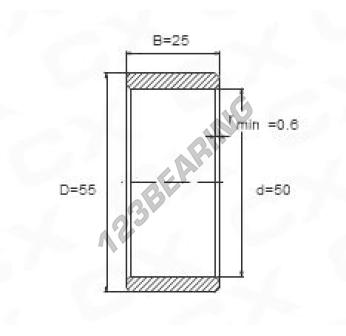 De Binnenring bekend als IR50X55X25 Algemeen meet 50 mm in binnendiameter, 55 mm in buitendiameter en 25 mm lengte. Het is gemaakt in .