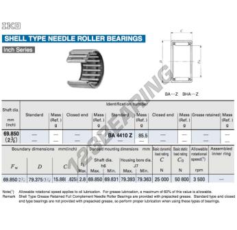 Het Naaldhulslager , bekend als het BA4410-ZOH-IKO IKO, heeft een binnendiameter van 69.85 mm, een buitendiameter van 79.38 mm en een dikte van 15.88 mm.