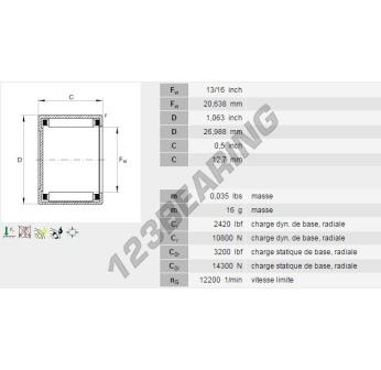 Het Naaldhulslager , bekend als het BCE138-INA INA, heeft een binnendiameter van 20.64 mm, een buitendiameter van 26.99 mm en een dikte van 12.7 mm.