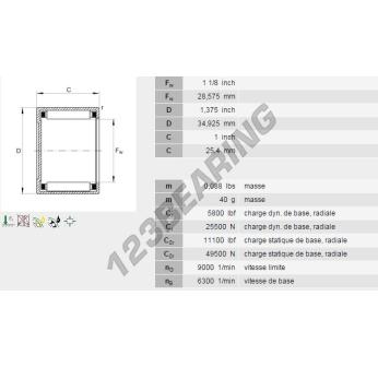 Het Naaldhulslager , bekend als het BCE1816-INA INA, heeft een binnendiameter van 28.58 mm, een buitendiameter van 34.93 mm en een dikte van 25.4 mm.