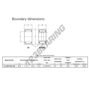 Het Naaldlager, bekend als het HJ-567232-48-JTEKT JTEKT, heeft een binnendiameter van 88.9 mm, een buitendiameter van 114.3 mm en een dikte van 50.8 mm.