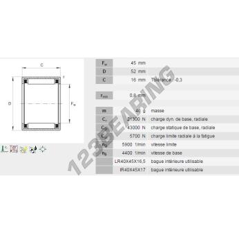 Het Naaldhulslager , bekend als het HK4516-A-HLA-INA INA, heeft een binnendiameter van 45 mm, een buitendiameter van 52 mm en een dikte van 16 mm.