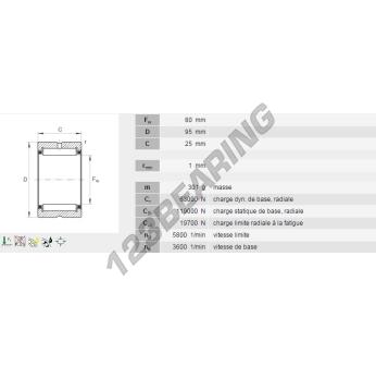 Het Naaldlager, bekend als het NK80-25-INA INA, heeft een binnendiameter van 80 mm, een buitendiameter van 95 mm en een dikte van 25 mm.