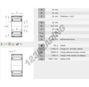 Het Naaldlager, bekend als het PNA20-42-INA INA, heeft een binnendiameter van 20 mm, een buitendiameter van 42 mm en een dikte van 20 mm.