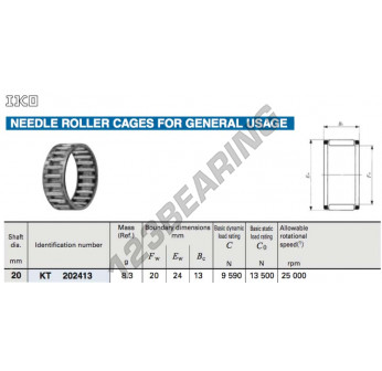 Het Naaldkooi, bekend als het KT202413C3-IKO IKO, heeft een binnendiameter van 20 mm, een buitendiameter van 24 mm en een dikte van 13 mm.
