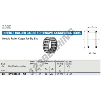 Het Naaldkooi, bekend als het KT202814-EGB2-IKO IKO, heeft een binnendiameter van 20 mm, een buitendiameter van 28 mm en een dikte van 14 mm.