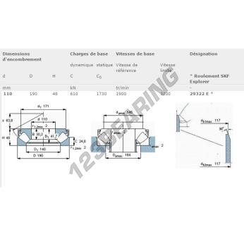 Het Rolstopper, bekend als het 29322-E-SKF SKF, heeft een binnendiameter van 110 mm, een buitendiameter van 190 mm en een dikte van 48 mm.