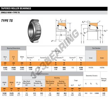 Het Kegellager, bekend als het 14137A-14275A-TIMKEN TIMKEN, heeft een binnendiameter van 34.93 mm, een buitendiameter van 69.85 mm en een dikte van 19.85 mm.