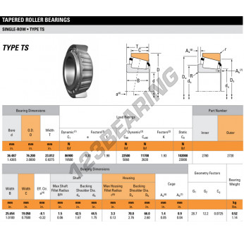 Het Kegellager, bekend als het 2780-2720-TIMKEN TIMKEN, heeft een binnendiameter van 36.487 mm, een buitendiameter van 76.2 mm en een dikte van 23.812 mm.