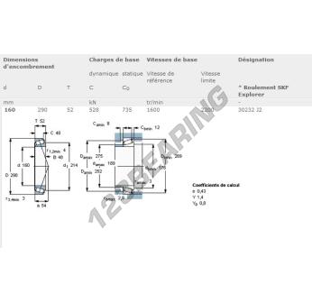 Het Kegellager, bekend als het 30232J2-SKF SKF, heeft een binnendiameter van 160 mm, een buitendiameter van 290 mm en een dikte van 52 mm.